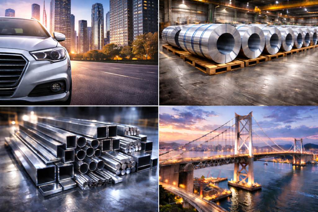 鋼材は様々な場面で使用され、経済を支える重要な物資です。東洋海運株式会社は、多様な鋼材を国内の各地へ海上輸送しています。(一般に鋼材を輸送する船舶のことを”鋼材船”と呼びます。)重量物で多くの種類がある鋼材製品を、安全に効率良く運ぶために、特別なRORO船や貨物船を建造し運航しています。当社には他所にはない、オンリーワンの船があります。